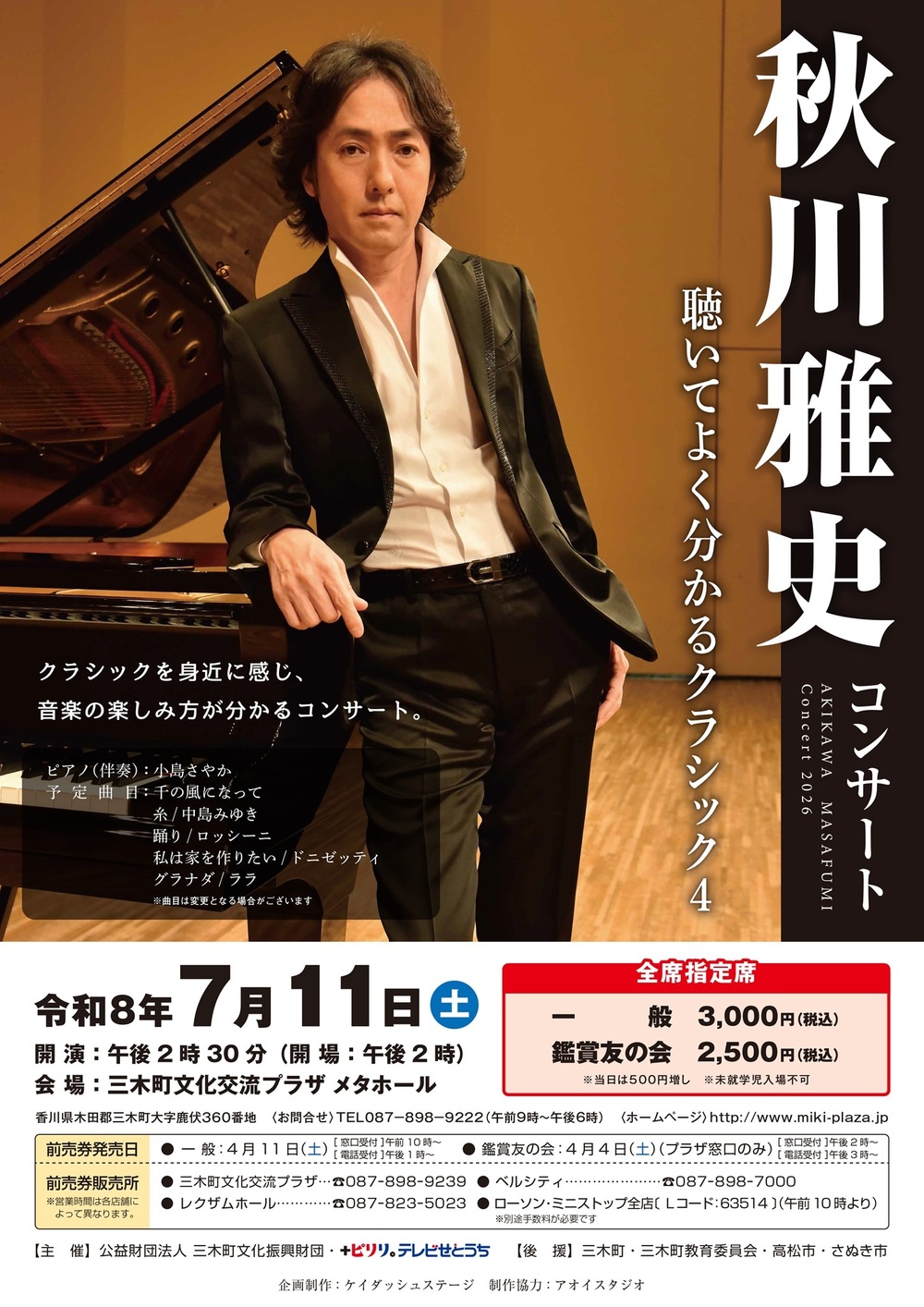- 三木町文化交流プラザ主催事業 「秋川雅史コンサート」